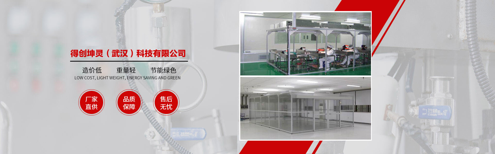 得創(chuàng)坤靈成立于2010年6月,專業(yè)從事食品無菌車間、GMP車間、電子無塵車間、食品醫(yī)藥包裝車間、醫(yī)療器械車間、潔凈棚、土建工程簡易房、無菌實驗室、組合式空調(diào)機組等項目的設(shè)計、裝修、施工、調(diào)試、安裝為一體的凈化工程公司,承接十萬級、萬級、千級、到百級的凈化車間、無塵車間、無塵室、潔凈廠房、潔凈室工程的改造與建設(shè)。 作為中國潔凈室系統(tǒng)工程及設(shè)備制造高品質(zhì)、專業(yè)化的代表,得創(chuàng)秉承“追求完美品質(zhì)、超越客戶期望”的理念,通過對客戶生產(chǎn)環(huán)境的深入研究及多年的工程實踐,積累了豐富的潔凈室空調(diào)凈化系統(tǒng)及節(jié)能優(yōu)化設(shè)計、項目管理及施工經(jīng)驗,綜合實力始終處于業(yè)界領(lǐng)先地位。 公司資質(zhì)齊全,包括裝飾裝修工程二級、機電安裝二級、電子與智能化二級、消防工程二級、環(huán)保工程二級;擁有多名高級工程師及暖通設(shè)計工程師,有著醫(yī)藥凈化工程設(shè)計、食品無菌食設(shè)計、電子無塵車間設(shè)計經(jīng)驗,長年與設(shè)計院有著良好的合作和溝通關(guān)系。公司多年專業(yè)從事凈化工程安裝業(yè)務,擁有數(shù)次在全國各地有著豐富安裝經(jīng)驗的安裝工程隊伍,在大型管道及彩板安裝方面有著豐富的安裝經(jīng)驗和先進的現(xiàn)場管理體系。 公司產(chǎn)品廣泛服務于電子、光電、微電子、光纖光纜、精密機械、生物制藥、食品飲料、航空航天等眾多領(lǐng)域。我們始終以技術(shù)為中心、以創(chuàng)新為動力、以服務為己任。以一流的產(chǎn)品質(zhì)量,良好的售后服務,參與到激烈的市場競爭中來,贏得客戶的支持與信賴。 隨著公司的持續(xù)發(fā)展、隊伍的日益壯大,公司將一如既往地堅持"以客戶為中心"的理念,在激烈的市場競爭中迎頭奮進,以"創(chuàng)一流品牌、建一流企業(yè)"的品牌拓展戰(zhàn)略,面對機遇與挑戰(zhàn),開創(chuàng)一片嶄新的天地! 品質(zhì)成就夢想、秉承口碑相傳、得創(chuàng)凈化……